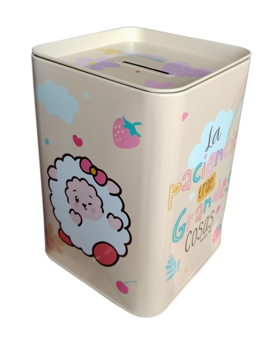 Alcancía cristiana decorativa con frase inspiradora, ideal para recordar que Dios guía nuestros sueños y propósitos. Este hermoso cofre de ahorro presenta un diseño delicado con flores y mariposas, acompañado del mensaje: “Todo lo que Dios ponga en tu corazón podrás lograrlo”, una frase que inspira fe, esperanza y perseverancia.