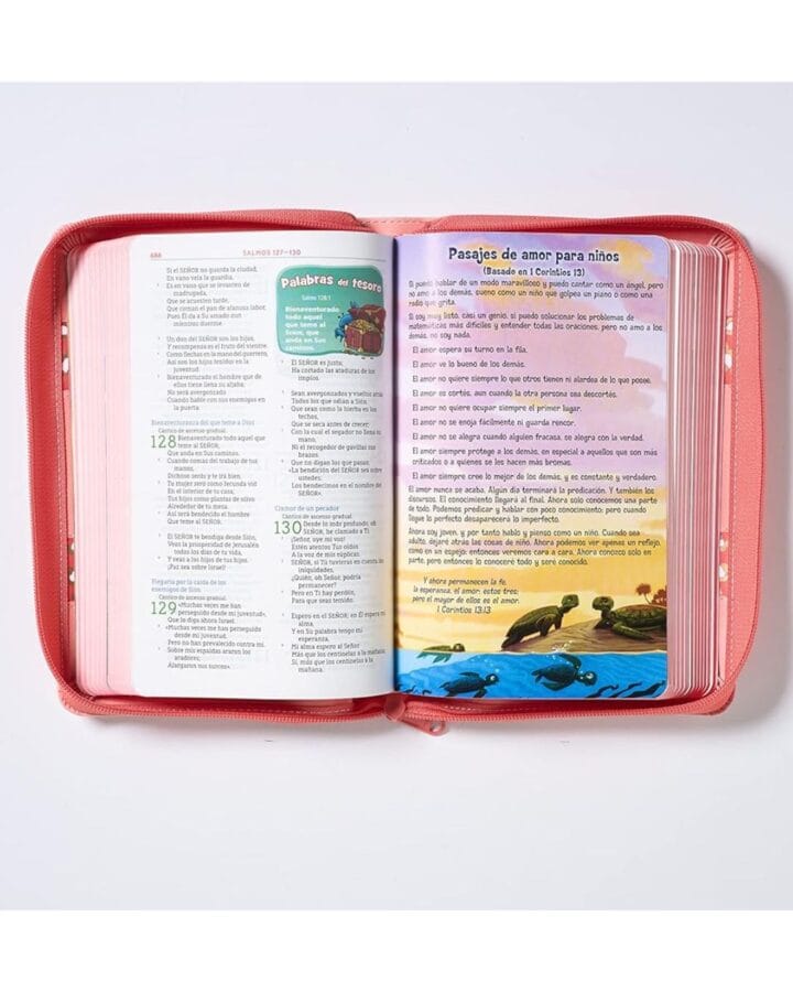 - Las ilustraciones coloridas, entre muchas actividades más, hacen de esta Biblia un libro único para los que inician en la hermosa aventura de fe en Jesús.