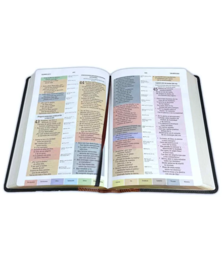 • Cada versículo en su propio color de acuerdo con 12 temas clave