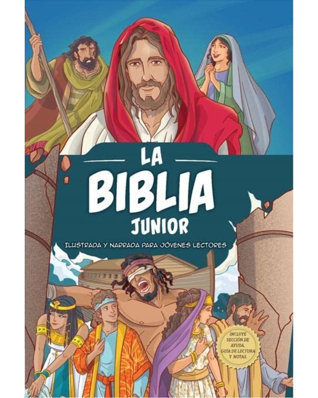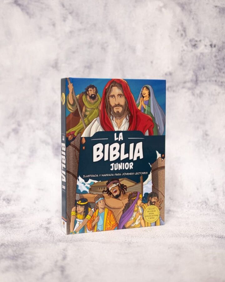 La Biblia Junior para jovencitos tiene historias desde Génesis hasta Apocalipsis, que brindan una descripción general completa de la palabra de Dios, y está narrada a un nivel de lectura adecuado para los jóvenes de 8 a 12 años de edad.