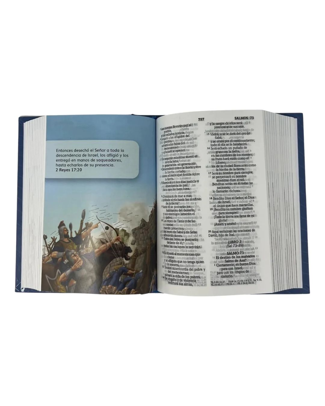 📖 La Biblia Reina Valera 2020 para niños azul es una edición especial diseñada para ayudar a los más pequeños a conocer la Palabra de Dios de manera clara, visual y comprensible.