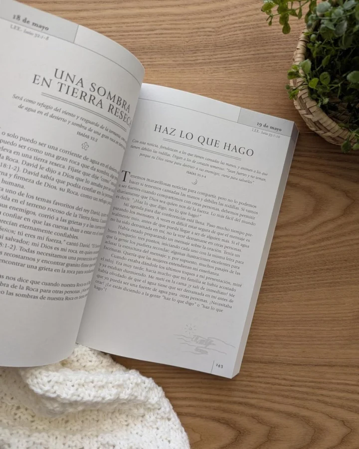 El Devocional en un año para mujeres le brinda la oportunidad de pasar tiempo con Dios cada día, respirar profundamente y aferrarse a la paz que únicamente Dios puede ofrecer. Le encantará la fresca perspectiva escrita por una mujer, para las mujeres. Cada día se centra en un verso clave de la Biblia y en un breve e inspirador pensamiento devocional para el resto del día que la mantendrá conectada con Dios y la acercará más a su Palabra día tras día.