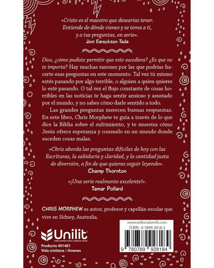 Los preadolescentes tienen grandes preguntas sobre Dios, la vida, la fe y la Biblia. Una común es: ¿Por qué Dios permite que nos pasen cosas malas? Las grandes preguntas merecen buenas respuestas. Este libro cálido, reconfortante y dinámico examina lo que dice la Biblia para ayudar a los jovencitos a reflexionar sobre esta gran pregunta por sí mismos.
